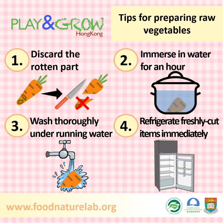 大部份嘅生蔬菜會更濃味同埋有更高嘅營養價值,所以我哋經常喺課堂上俾小朋友試食生嘅蔬菜! 處理生嘅蔬菜時可以點樣確保食物安全?