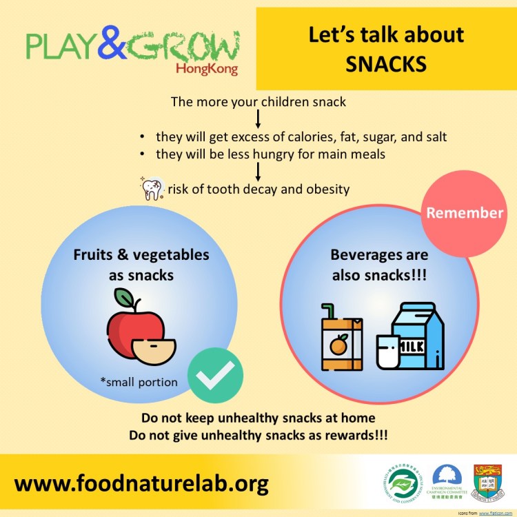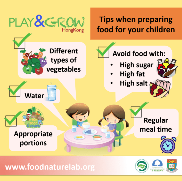 Preschool children need 3 regular meals and 2 snacks a day. Try the following tips when preparing food for your child!