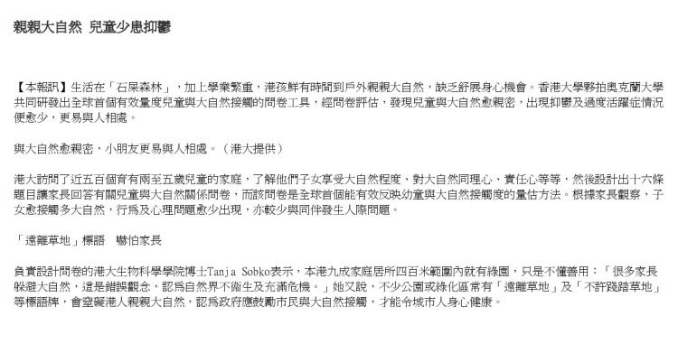 Press Dr Sobko’s interview on a local Chilean Newspaper SingTao Smart Parents Vol. 461 星島日報親子王周刊 14/03/2019 RTHK 香港電台 10-01-2019 HK01 香港01 10/01/2019 Headline Daily 《頭條日報》 | 2019-01-11 Newspaper | P15 | 港聞 Ming Pao Daily News 《明報》 | 2019-01-11 Newspaper | A22 | 教育 Oriental Daily News 《東方日報》| 2019-01-11 Newspaper | A08 | 港聞 Sky Post 《晴報》 | 2019-01-11 Newspaper | P44 | 港聞 Wen Wei Po 《文匯報》 | 2019-01-11 Newspaper | A25 | 新聞透視眼 Lion Rock Daily 《香港仔》 | 2019-01-11 Newspaper | P08 | 港聞 HK01 香港01 10/01/2019